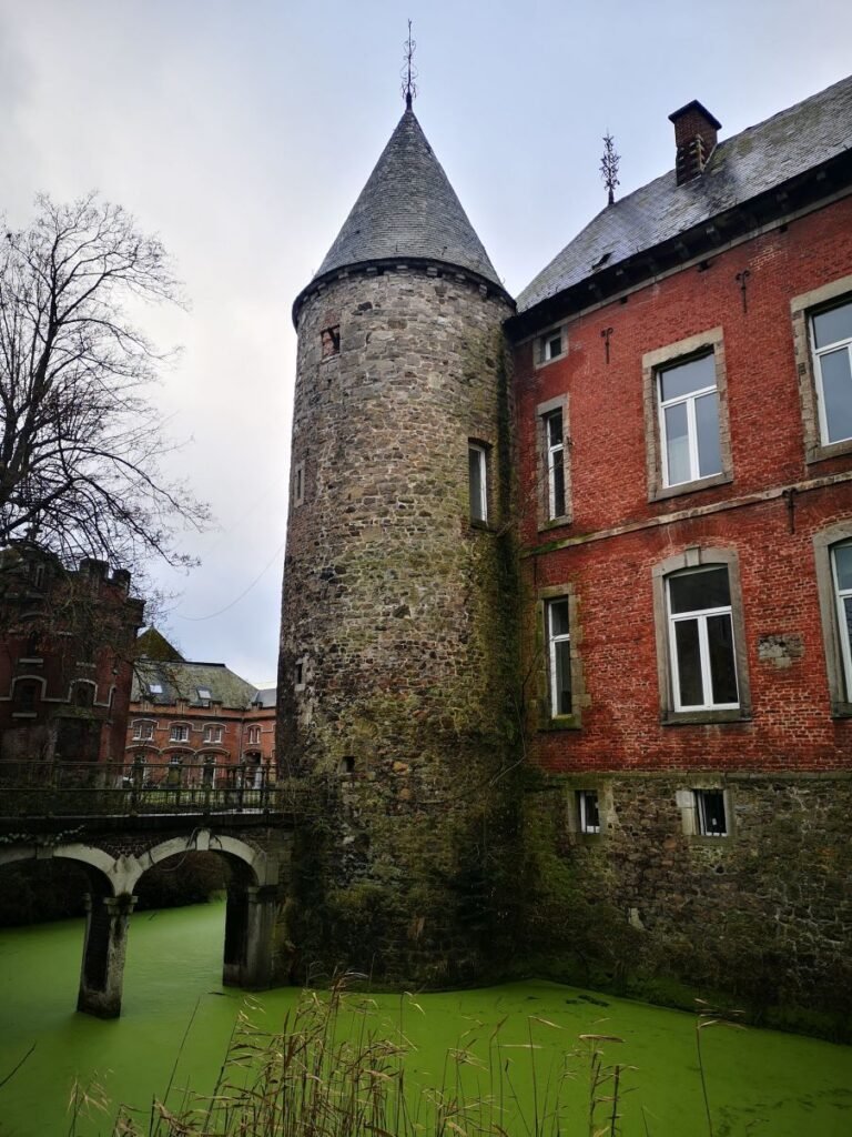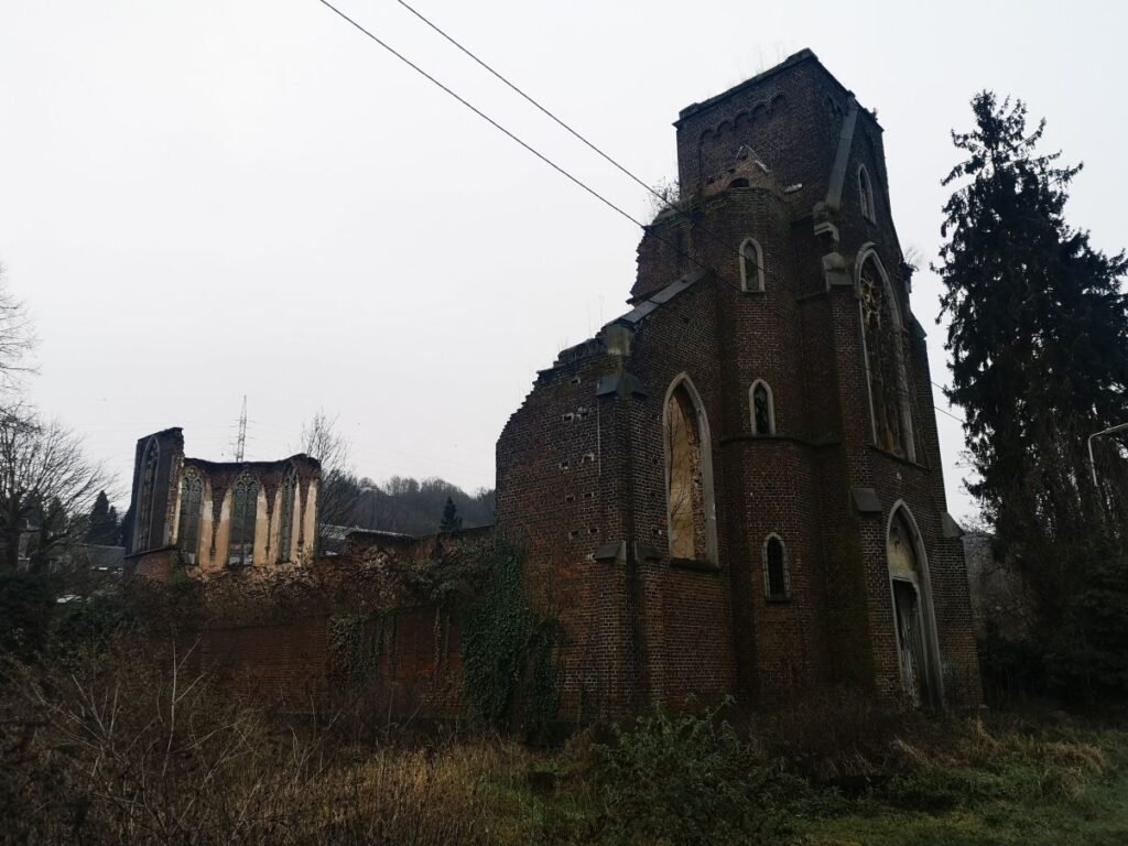 De trein stopt ietsje voor tienen in Amay. Hoewel de zon even geleden nog scheen, vallen nu de eerste regendruppels uit de lucht. Ideaal wandelweer! Vanaf het station gaat de aanlooproute van de GR576 meteen richting Maas en deelgemeente Ombret. Het pad stuurt me een stukje langs de N90-autoweg die tussen de Maas en het dorp geprangd zit. Ik kom voorbij de oude kerk van Ombret waarvan niet meer dan een ruïne overblijft. Via een steegje volg ik de GR-tekens. Maar ik merk al snel dat ik zo in zuidelijke richting aan het wandelen ben en draai de Rue d’Ombret in om verderop de GR in de goede richting te volgen.