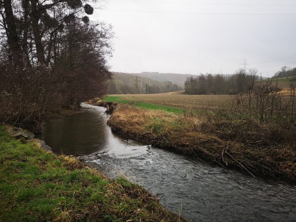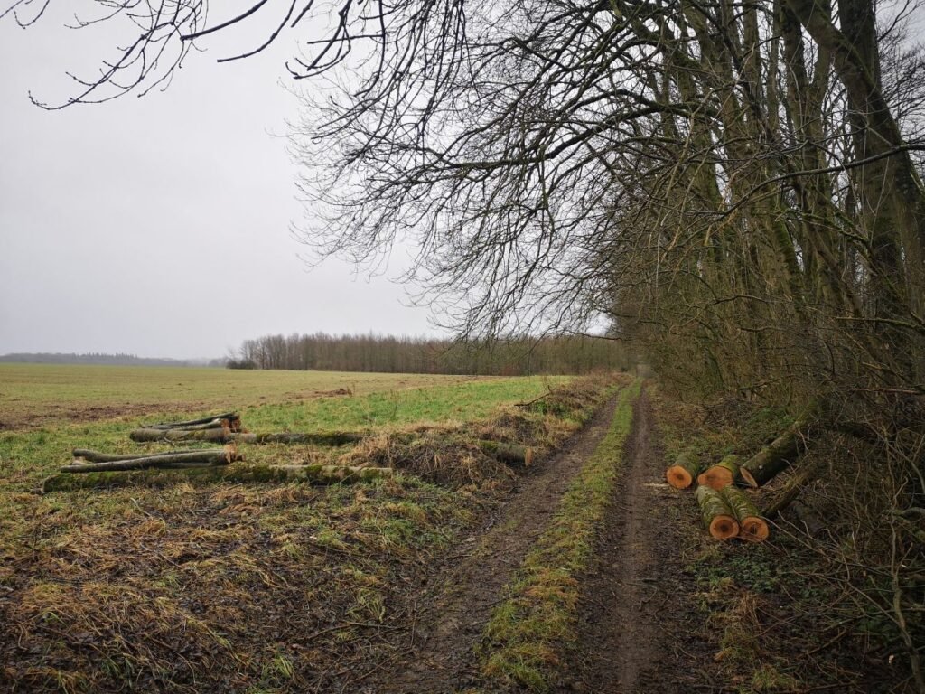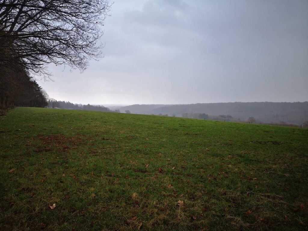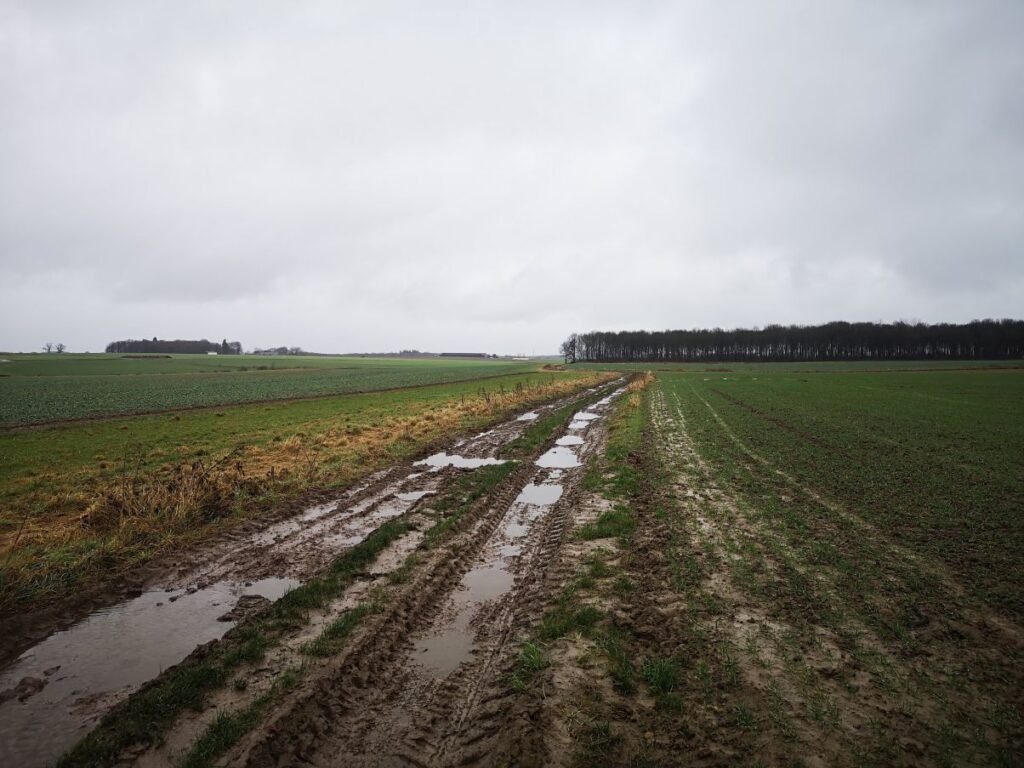 Dit stukje van de GR ligt helemaal in de Condroz. Het landschap is dan ook zeer typisch. Glooiend met langgerekte heuvelruggen, doorsneden door ondiepe valleien en geen al te grote bossen. De eerste echte helling is die door het Bois d’Hermalle net na het dorp Hermalle-sur-Huy. Bij Saint-Sévérin verlaat ik het bos. De regen jaagt over de vlakte en felle rukwinden blazen me in noordoostelijke richting. Ik moet oppassen dat ik op de modderige paden tussen de velden niet ten val kom. Na 17 kilometer kom ik aan de kruising met de N63-autoweg.