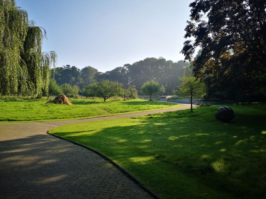 We houden andermaal halt. Een deel van de groep opteert voor een drankje op het terras van het restaurant. De anderen zoeken wat versnaperingen in het winkeltje. Na een half uurtje vatten we de laatste kilometers aan door de velden op de rand van het Brussels en Vlaams Gewest. Zo komen we ineens in de Mutsaardwijk terecht en niet veel later houden we nog halt aan het pop-up café in het Park van Laken voor een laatste versnapering. Het beginpunt van de wandeling, dat ook ons eindpunt is, is niet ver meer.