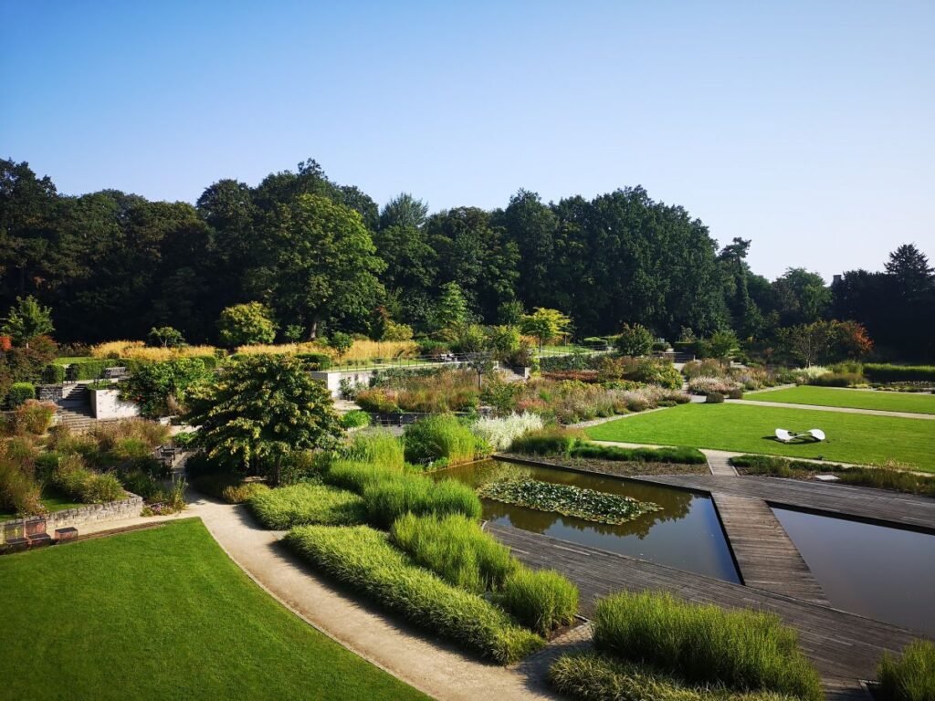Vertrekken doen we aan de metrohalte Stuyvenbergh, vanwaar we via de Clementinasquare en z’n visvijver meteen in het Sobieskipark belanden. Ooit was dat park privaat eigendom van koning Leopold II en dus ook niet toegankelijk voor het publiek. De naam van het park is, net als de straat ervoor, een eerbetoon aan de held van Wenen. Jan Sobieski was de Poolse koning die als leider van een Christelijke coalitie de Ottomanen versloeg in de Slag bij Wenen in 1683. Terwijl het Sobieskipark op zich al prachtig is en tot rust uitnodigt, zijn het daaropvolgende Tuinen van de Bloemist een verrukking. Planten, bloemen en vijvers, doorspekt met mooi aangelegde paadjes, een uitkijktoren en zitbanken. Een prachtig oord!