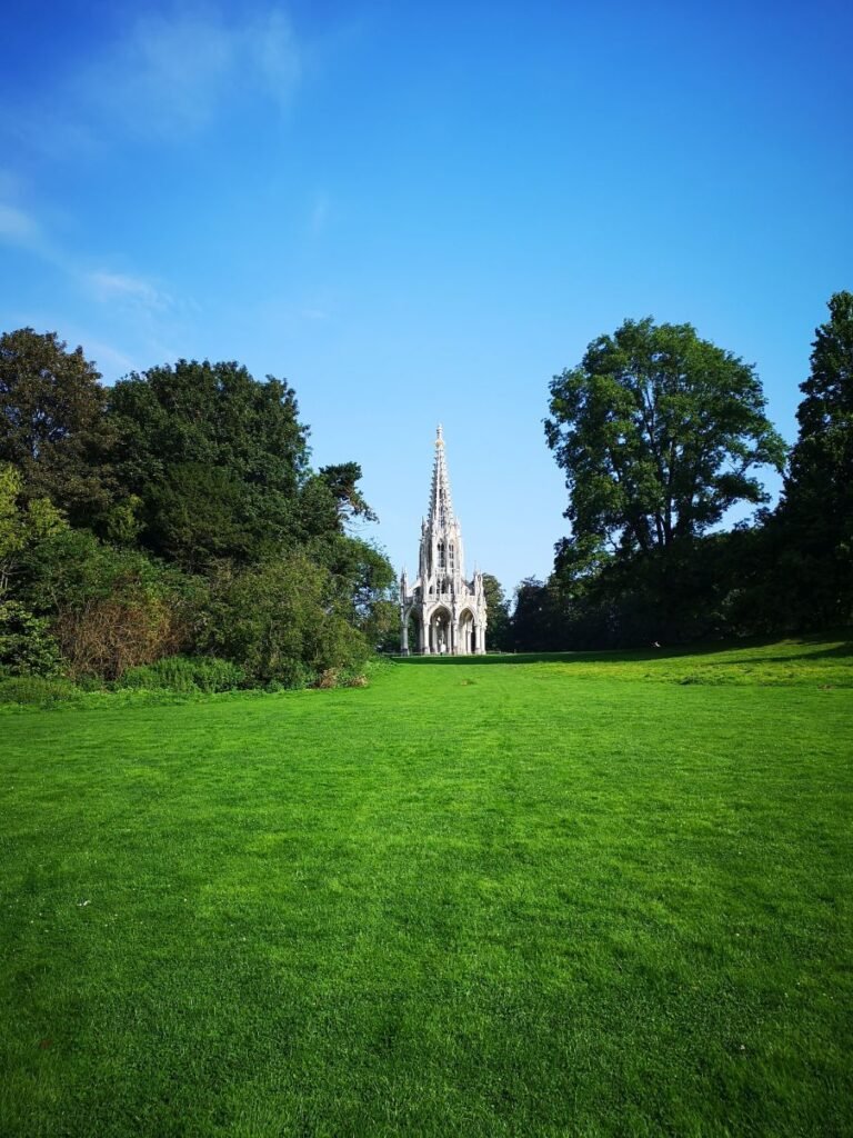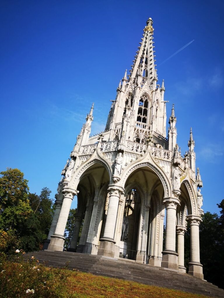 De volgende blikvanger is de Sint-Annakapel en de gelijknamige fontein. Terwijl we er langslopen is er een kleine orthodoxe misviering aan de gang in de kapel. Door het Park van Laken gaat het naar het Monument van de Dynastie vanwaar je een mooi uitzicht kan hebben op een stukje Brussel. Het monument, al jaren verstopt achter een hek, werd in 1880 ingehuldig als aandenken aan de eerste koning der Belgen; Leopold I.