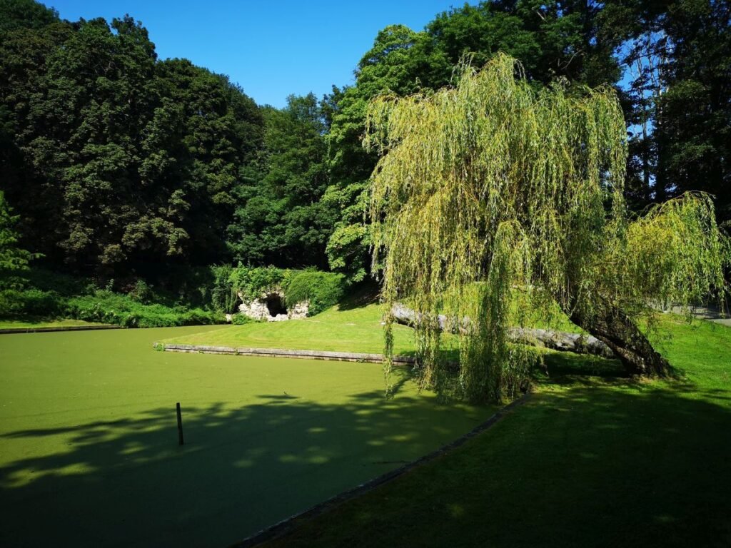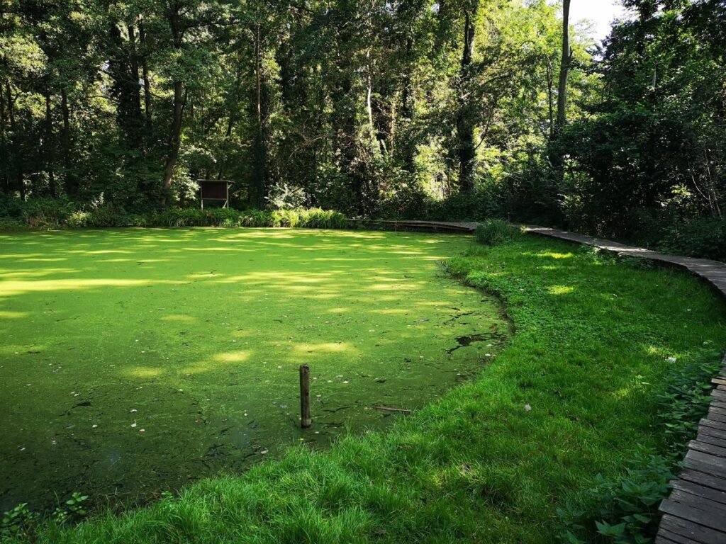 Ik passeer op enkele meters van mijn ouderlijk huis, alvorens via de sportvelden van Heembeek de loop van de Tweebeek en z’n vijvers te volgen. Via een knuppelpad bereiken we een bos zonder naam, gescheiden door de Trassersweg. Ineens zie je nog het oude landelijke karakter van NOH, met zijn velden en overgroeide braakliggende terreinen. 500 meter door de industriezone van Neder-Over-Heembeek brengen ons langs de Ring met de tunnel die naar het Drie Fonteinendomein leidt. Daar zoeken we een picknickplek en die vinden we aan de vijver, naast de bekende bloedgrotten.
