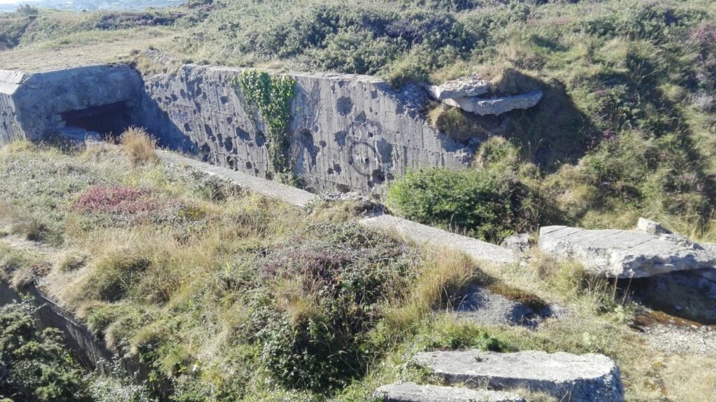 Ik kom twee dames tegen die ik daarnet al aan de Pointe de Toulinguet tegenkwam en zal hun pad nog een hele dag kruisen. Ik hou even halt voor een korte snack en een drankje, want hoewel de temperaturen hier beduidend lager liggen als elders in West-Europa is het toch ongenadig warm en er is amper wind. Ik zet me neer in de schaduw van een Duitse bunker en kan van hieruit ook reeds richting Pointe du Van kijken. Dat is net niet het einddoel van mijn wandeltocht. Maar om daar te geraken moet ik eerst nog 130 kilometer wandelen.