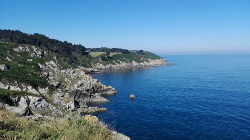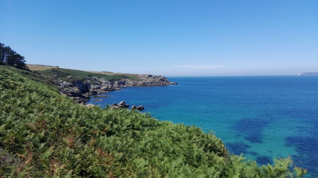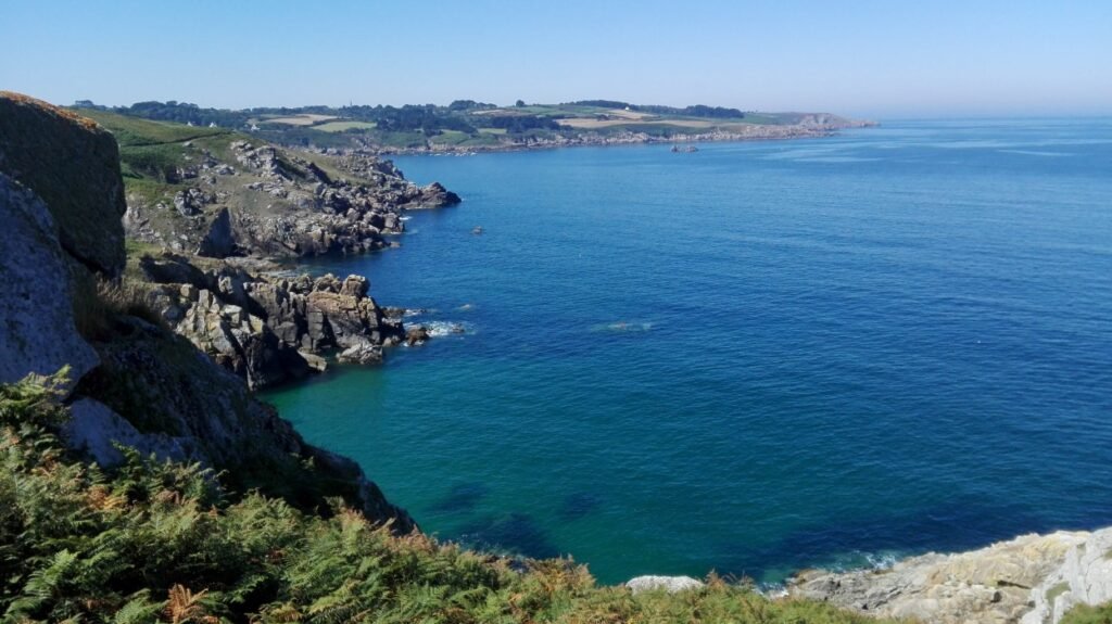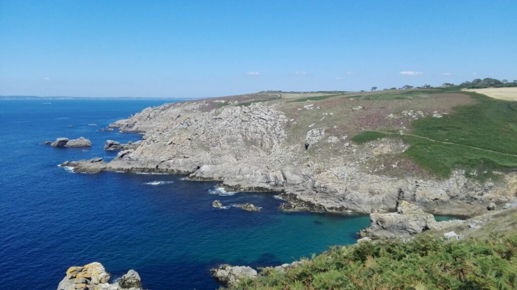 Als ik om 14u15 vertrek merk ik ook dat de GR nu meer op en neer gaat en de omgeving tegelijk ruiger wordt. Even voobij Trénaouret krijg ik een fantastisch zicht op de Pointe de Beuzec en Kastel Koz. Ik neem de tijd om even van het natuurschoon te genieten. Prachtig! Ook de volgende baaien en pointes zijn stuk voor stuk wondermooi om naar te kijken. Wat me opvalt is dat ik sinds deze morgen slechts één GR-wandelaar ben tegenkomen, in Douarnenez in tegenovergestelde richting, amper één dagwandelaar en slechts een handvol lokale bewoners die even hun hond uitlieten. Nochtans zou ik durven zeggen dat dit stukje GR grandioos is en mijns inziens mooier dan het Presqu’île de Crozon.