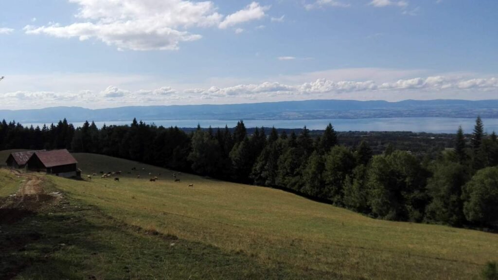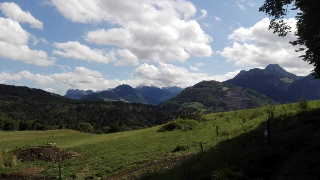 Al na enkele kilometers maak ik een fout, waardoor ik een omweg via het mooie dorpje l’Ermitage moet maken. Kort na de eerste oversteek van de D26 kom ik al een eerste “randonneur” tegen, een Fransman uit Bordeaux. We wandelen samen tot Armoy, maar net als we aan het dorpje zijn, merk ik dat ik mijn vouwflesje onderweg ben kwijtgespeeld. Ik laat Nico dus verder wandelen en loop terug. Ik moet zo’n 500 meter teruglopen en vind mijn flesje tenslotte terug in een bocht. Gelukkig onbeschadigd. Uiteindelijk haal ik Nico terug in bij Les Jossières, waar we andermaal de D26 oversteken. Hij steekt een sigaret op en ik wandel verder. Ik zal Nico niet meer terugzien, want zijn tempo ligt beduidend lager dan het mijne en hij is van plan om ergens bij Mérou te overnachten, terwijl ik toch tenminste tot bij Chevenoz wil geraken.