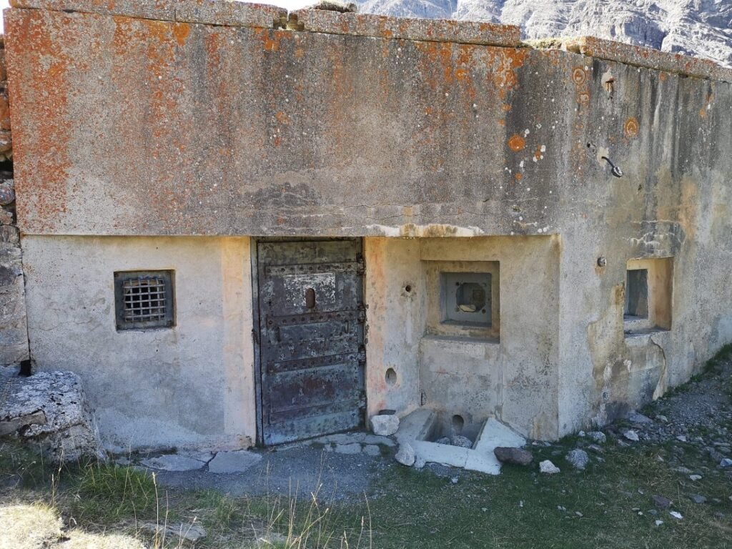 Na nog geen kilometer zien we aan de overkant van de gué (oversteek) het bivak van ons favoriete Frans koppel. Zij hebben zich daar tussen de bomen geïnstalleerd en water is er in het beekje meer dan voldoende. Blijkbaar hadden ze met stenen ook een teken gemaakt, zodat ik het zou zien, maar daar ben ik tot hun teleurstelling toch aan voorbijgewandeld. Ik laat Vladimir al een eind doorstappen terwijl ik nog een even een praatje sla. Wat verderop houdt hij halt in het beetje schaduw dat de ruïne van het Fort de Plate Lombarde (2190m) hem biedt. Dit fort maakte deel uit van de Maginotlinie, de verdedigingslijn die zich over de hele Franse oostkust uitstrekt. Het zwaartepunt van die lijn lag wel noordelijker, dichter bij de Duitse grens in de Elzas, de Lorraine en de Franche-Comté. De Fransen voorzagen immers dat de Duitsers zich na de nederlaag in de Eerste Wereldoorlog niet koest zouden houden. Gelijk hadden ze. De werken aan het grootste deel van de verdedigingswerken gebeurden in de jaren 1930 tot aan het begin van de Tweede Wereldoorlog. Dit Fort de Plate Lombarde werd tussen 1931 en 1935 gebouwd. Voor zover geweten kwam het fort slechts eenmaal in actie, namelijk op 22 juni 1940, toen Italiaanse troepen probeerden de Col de Stroppia over te steken. Dezelfde dag tekende Frankrijk een wapenstilstand met de Duitsers, maar met Italië pas twee dagen later op 24 juni (om vanaf 25 juni in te gaan).