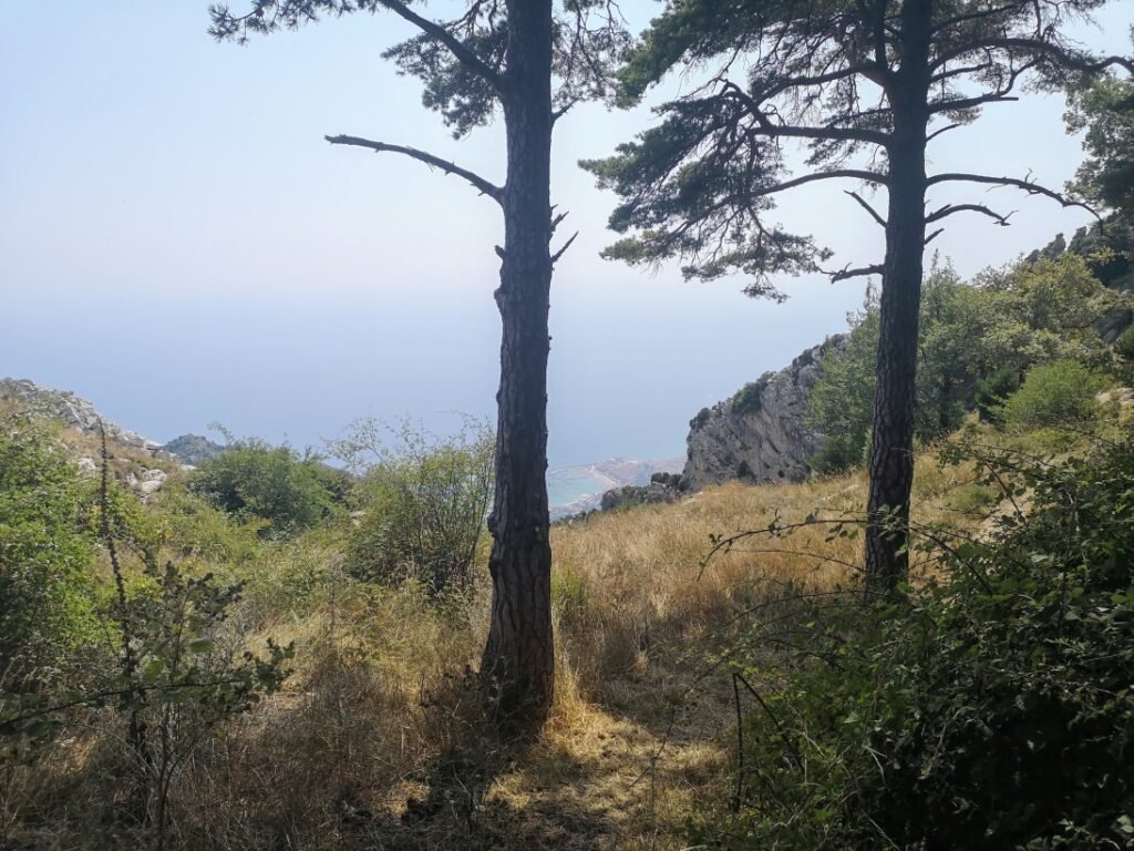 We verlaten Sospel achter het treinstation. Eerst moeten we 750m klimmen naar de Col du Razet (1033m). Dat gaat enigzins vlot, maar bij de Source de l’Albarea is er een flinke kudde geiten die bewaakt wordt door enorme herdershonden. Er is geen doorkomen aan en de honden blaffen uit volle borst. We houden even halt.