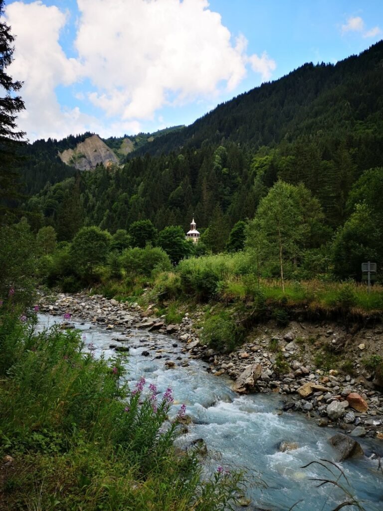 Maar voor ik me tussen horden wandelaars waag, staat er een lekker ontbijt op het programma. Om 8u vertrek ik. Het eerste stukje door de vallei van de Bon Nant staat gelijk aan de stilte voor de storm. Geen idee waar de vele TMB-wandelaars naartoe zijn. Misschien heeft dit te maken met de vlakke, saaie aanloop naar de Col du Bonhomme (2329m) en worden ze dus liever wat verderop per bus afgezet? Ik juich diep vanbinnen al dat het vandaag misschien toch nog zal meevallen met die drukte. Te vroeg gejuicht. Aan de kapel van Notre-Dame de la Gorge (1209m) wandel ik ineens tussen hele groepen luidruchtige wandelaars door. Mijn interesse om de kapel te bezoeken is volledig weg en ik wil zo snel mogelijk voorbij de refuge van de Col de la Croix du Bonhomme, zodat ik weer op m’n gemak ben.