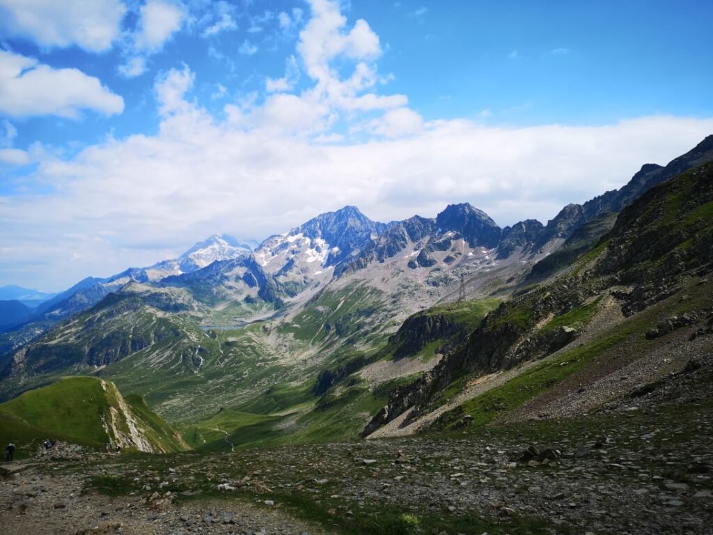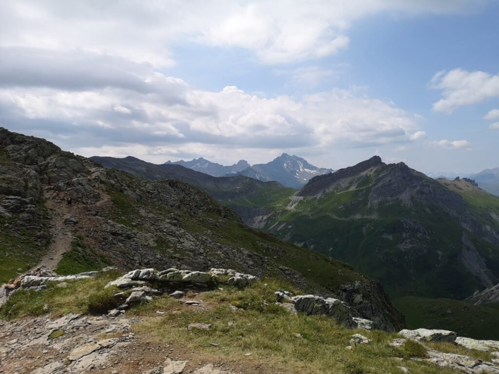Een uurtje later sta ik aan de Refuge van de Croix du Bonhomme (2433 m). Er is hier een massa volk. Hoe kan het ook anders als je weet dat hier 115 bedden staan en hier op de kruising GR5/TMB sowieso veel volk passeert. Ik besluit om toch iets te eten in de refuge. Druk! Het duurt eeuwig in deze chaos om iets om te eten te kunnen bestellen. Uiteindelijk laat ik me een soep smaken, evenals een omelet met een salade. Tijdens het eten word ik aangesproken door een Amerikaanse. Blijkt dat zij een travel writer is en door de bekendere Amerikaanse travel writer Rick Steves gevraagd werd om een reportage over de TMB te draaien. Als u van plan bent om de TMB te wandelen, doe dit dan ten laatste volgende zomer (2020), want de reportage wordt begin 2020 uitgezonden en dus kan je je in de toekomst ook nog aan een hele meute Amerikanen verwachten. Tot nu toe ben ik vooral Aziaten en Italianen tegenkomen. Soms ook eens een verloren GR5-wandelaar.